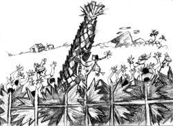 अगले दिन जब मैं स्कूल पहुँचा तो देखा कि बच्चे छीन्द के पेड़ को घेरे हुए खड़े थे। वे छीन्द के पेड़ को अपने स्कूल में लाना चाहते थे इसलिए हम सबने मिलकर छीन्द के पेड़ को लुढ़काया, सरकाया, घसीटा और खींचा। तमाम जुगत लगाकर जैसे-तैसे हम इसे अपने स्कूल के किनारे तक ले आए। छीन्द का पेड़ अब हमारे स्कूल की सम्पत्ति बन गया।