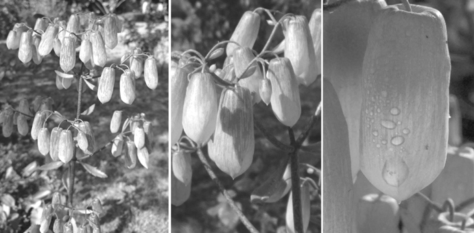 वास्तव में मुझे जिसने सबसे ज़्यादा प्रभावित किया वह है इसका पुष्पक्रम। मैं कॉलेज के बगीचे में धूप सेंक रहा था। जनवरी का अन्तिम सप्ताह था। अचानक मेरी नज़र ब्रायोफिलम के सुन्दर पुष्पक्रम पर पड़ी। लम्बी डण्डियों पर बड़े करीने से लगे फूलों को देखा तो लगा कि ये फूल नहीं अंगूर के गुच्छे हैं। कच्चे-पके अंगूर। मैंने फोटो निकाले, पास जाकर देखा तो पता चला कि ये फूल नहीं हैं, ये तो कलियाँ हैं जो उल्टी-लटकी हुई हैं। क्या सुन्दर झूमर है जो दिन में प्रकाशित हो रहा है। ज़रा इसकी सिमेट्री तो देखिए।