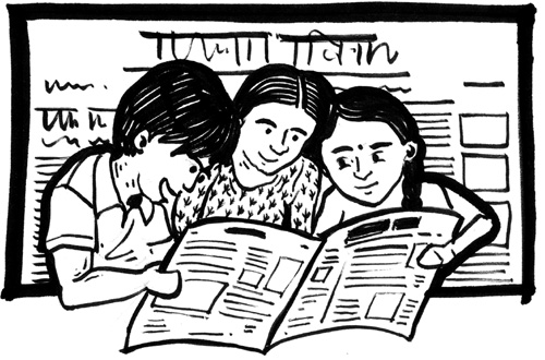 जब ‘पुस्तकालय टीम’ के बच्चे इकट्ठा हुए तो सबको बिठाकर बातचीत की शुरुआत हुई, “कौन-कौन जानता है कि अखबार में कितने पृष्ठ होते हैं?” गायत्री बोली, “मुझे मालूम है, 15 पन्ने होते हैं।” मनीषा ने कहा, “नहीं 18 होंगे।” रीना, संगीता ने भी अन्दाज़ा लगाकर कहा, “18-20 होंगे।” इसके पहले कभी किसी ने पन्ने नहीं गिने थे, शायद सोचा भी नहीं था। मैंने कहा, “चलो, अखबार निकालो और गिन लो।”
