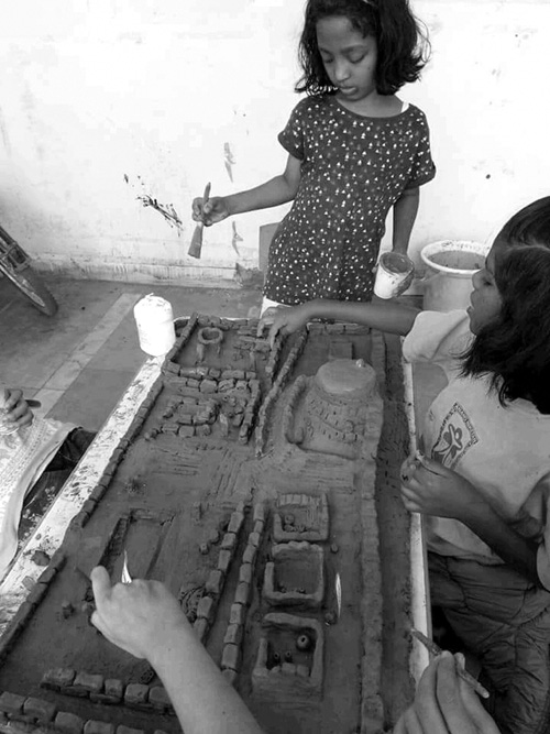 आनन्द निकेतन डेमोक्रेटिक स्कूल में आने पर हमारी कल्पनाओं को फिर से पंख लगने लगे। बच्चों के साथ किए जा रहे इतिहास के पुनर्पाठ ने नए सिरे से हमारी इतिहास चेतना को आकार देना शु डिग्री किया। इसी क्रम में जब हमने बच्चों के साथ सिन्धु घाटी सभ्यता के इतिहास को साझा किया, तो लगभग पाँच हज़ार पुराना यह शहर हमारी कल्पनाओं में जीवित होने लगा। हमारे मन में यह इच्छा उठने लगी कि क्यों न इस प्राचीन शहर को फिर से ‘बसाया’ जाए। बच्चों से यह बात साझा की तो वे अत्यन्त उत्साहित हो गए। बच्चों के उत्साह ने हमें और प्रेरित किया। हम सभी मिलकर लगातार सोचने लगे कि इस विचार को हम साकार कैसे कर सकते हैं। अपने सहकर्मी अनिल सिंह से भी यह बात साझा की। अनिल को इस तरह के काम में महारत हासिल है। उन्होंने एक महत्वाकांक्षी राय दी, “हम छोटी-छोटी ईंटें बनाकर पकाते हैं, फिर उससे इस शहर को बनाते हैं।” आइडिया पसन्द आया लेकिन यह काम बहुत समय लेने वाला था। फिर बच्चों ने कहा कि चलिए हम लोग मिट्टी से ही इस शहर को बनाते हैं। हम लोग तैयार हो गए, चलो शुरुआत तो करते हैं। बीहू ने कहा, “ऐसा करते हैं कि कुछ अखबार गला देते हैं। पेपर मैशे तैयार कर सकेंगे तो अच्छा बनेगा।” हमने एक बाल्टी में कुछ अखबार गला दिए।