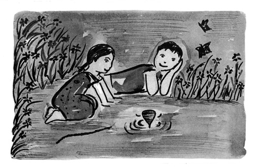 बच्चों को किताब से सभी सोलह कविताएँ पढ़कर सुनाई गईं। उनसे पूछा गया कि उन्हें कविता में क्या बात अच्छी लगी। तो नाज़िम ने कहा, “कविता में जो एक-से शब्द आते हैं, वे अच्छे लगते हैं।” कुछ बच्चे बता रहे थे कि वे विलोम शब्द हैं -- गुड़िया-पुड़िया। तब वंदना मैडम ने उन्हें समझाया, “ये विलोम शब्द नहीं, तुकान्त शब्द हैं जिनमें एक-सी आवाज़ आती है।” फिर मैंने कहा, “नाज़िम ने बताया है कि कविताओं में जो एक-सी ध्वनि वाले शब्द आए हैं वो अच्छे लगे। इसके अलावा इन कविताओं में और क्या बातें अच्छी लगीं?” बच्चे थोड़ी देर चुप रहे। उन्हें कुछ देर टटोलने पर भी कुछ खास नहीं उभरा। वे कविताओं के विवरण बता रहे थे। मैंने कहा, “चलो, एक बार कुछ कविताएँ फिर से पढ़ लेते हैं।” मैंने ‘लट्टू’ वाली कविता पढ़ी: