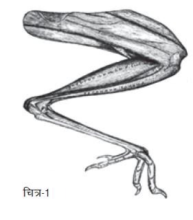 चित्र में पंजे की उंगलियाँ तो दिखाई दे ही रही हैं पर पाँव के ऊपर मौजूद लम्बी हड्डी को देखें। वह दरअसल उनका टखना है। टाँग का निचला हिस्सा बनाने वाली टिबिआ और फिब्युला हड्डियाँ और ऊपर मौजूद फीमर हड्डी पक्षियों के पंखों के कारण छुपी रहती हैं।