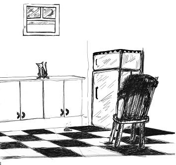 “यह भी मेरी गलती है, ना?” मैंने व्यंग्य से कहा, “आलसी बिल्ली, दफा हो जाओ यहाँ से।”