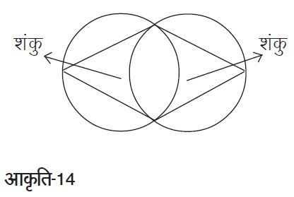 जब इस वर्क-शीट को बाँटा गया तो सभी बच्चे आसानी-से इन दो वृत्तों के बीच सम्बन्ध देख पाए। वे इसकी तुलना अपने पहले के अभ्यास से भी कर रहे थे। ज़्यादातर बच्चों ने इस तरह की आकृति बनाई।