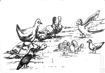 इसके बाद बच्चों से अण्डों के बारे में बात शुरू हो गई। “आपने किस-किस जीव के अण्डे देखे हैं?” बच्चों ने बताया कि उन्होंने मुर्गी का अण्डा देखा है और चिड़िया का अण्डा देखा है। एक बच्चे ने कहा, “बतख का अण्डा देखा है। बड़ा होता है।” एक और बच्चे ने कहा, “मैंने चींटी के अण्डे देखे हैं। बहुत छोटे होते हैं। चींटी लेकर चलती है।” इस तरह बच्चों से अण्डों के बारे में बात होती रही। इसी क्रम में एक बच्चा बताने लगा कि उसके दादा (बड़े भाई) मछली मारने जाते हैं। एक दिन तालाब में मछली मारने में उनकी बंसी में एक कछुआ फँस गया और वे उसे घर ले आए। “उसका एक भाग तो हम लोगों ने खा लिया और उसका खोल हमने घर के ऊपर लगा दिया,” बच्चे ने बताया। मैंने पूछा, “उसको घर के ऊपर लगाने से क्या होता है?” तो पावनी ने कहा, “उससे नज़र नहीं लगती है।” मैंने पूछा, “नज़र लगना क्या होता है?” पावनी बताने लगी, “हमारी नानी बताती हैं कि नज़र लग जाती है।” मैंने पूछा, “नज़र कैसे लगती है?” पावनी कहने लगी, “जैसे कोई अच्छा दिख रहा हो तो कोई कह दे कि तुम अच्छी लग रही हो तो नज़र लग जाती है और वह बीमार पड़ जाता है।”