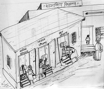 सभी चित्र: हीरा धुर्वे: भोपाल की गंगा नगर बस्ती में रहते हैं। चित्रकला में गहरी रुचि। साथ ही ‘अदर थिएटर’ रंगमंच समूह से जुड़े हुए हैं।