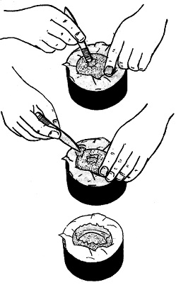 अब छिले हुए उबले अण्डे को खड़े में दो हिस्सों में काट दिया गया। कच्चे अण्डे के अन्दर जो कुछ दिखा और उबले अण्डे को काटकर जो कुछ दिखा, उनकी तुलना की गई। दोनों में कुछ स्पष्ट समानताएँ हैं। उदाहरण के लिए, कच्चे अण्डे में जो अर्ध-ठोस चकती के आकार का पीला योक था, वह उबले अण्डे में लगभग उसी रंग के गोलाकार ठोस में परिवर्तित हो गया था। जिस स्थान पर अण्डे के कम नुकीले सिरे की तरफ कवच के अन्दर की ओर हवा की थैली (मैं पहले इसका ज़िक्र करना भूल गया था) जुड़ी थी, वह उबले अण्डे में उसी स्थान पर एक गड्ढे के रूप में दिखाई देती है।