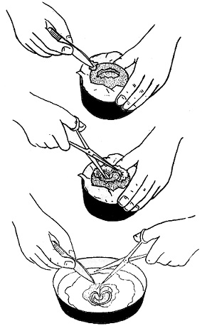 सारे कच्चे फूटे अण्डों के अन्दर की पूरी सामग्री को प्लास्टिक की ऊँची किनोर वाली तश्तरी में रखे नमकीन पानी में उड़ेल दिया गया। नमकीन पानी साधारण पानी में नमक घोलकर बनाया गया था। उससे पहले हरेक टोली ने पारदर्शी चिपचिपे पदार्थ की थोड़ी-सी मात्रा को एक परखनली में रख लिया था। नमकीन पानी क्यों? यह बताया गया कि भ्रूण ऐसे पानी में ज़्यादा समय तक जीवित रहता है क्योंकि नमकीन पानी कोशिकाओं की गतिविधियों को ज़्यादा देर तक चलने में मदद करता है। यह भी ज़िक्र हुआ कि जो ‘सलाइन’ मरीज़ों को चढ़ाया जाता है वह मूलत: ऐसा ही नमकीन पानी होता है और मरीज़ के शरीर में लगभग यही भूमिका निभाता है अर्थात् शरीर की कोशिकाओं को शरीर में ऐसे तरल की कमी होने पर जीवित रहने में मदद करना।