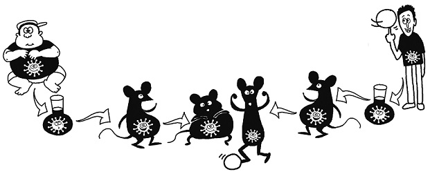 आश्चर्यजनक बात यह है कि वैज्ञानिक यह परीक्षण प्रयोगशाला के चूहों पर भी कर सकते हैं। प्रयोगशाला में रोगाणु-मुक्त जानवरों की उत्पत्ति सम्भव है, वे जानवर जिनके शरीर के अन्दर या ऊपर कोई सूक्ष्म-जीव नहीं रहते हैं। ऐसे जानवरों को आइसोलेटर (विलगक) में पाला-पोसा जाता है और अत्यन्त ध्यानपूर्वक अन्दर की परिस्थितियों को सूक्ष्म-जीवों से मुक्त रखा जाता है।