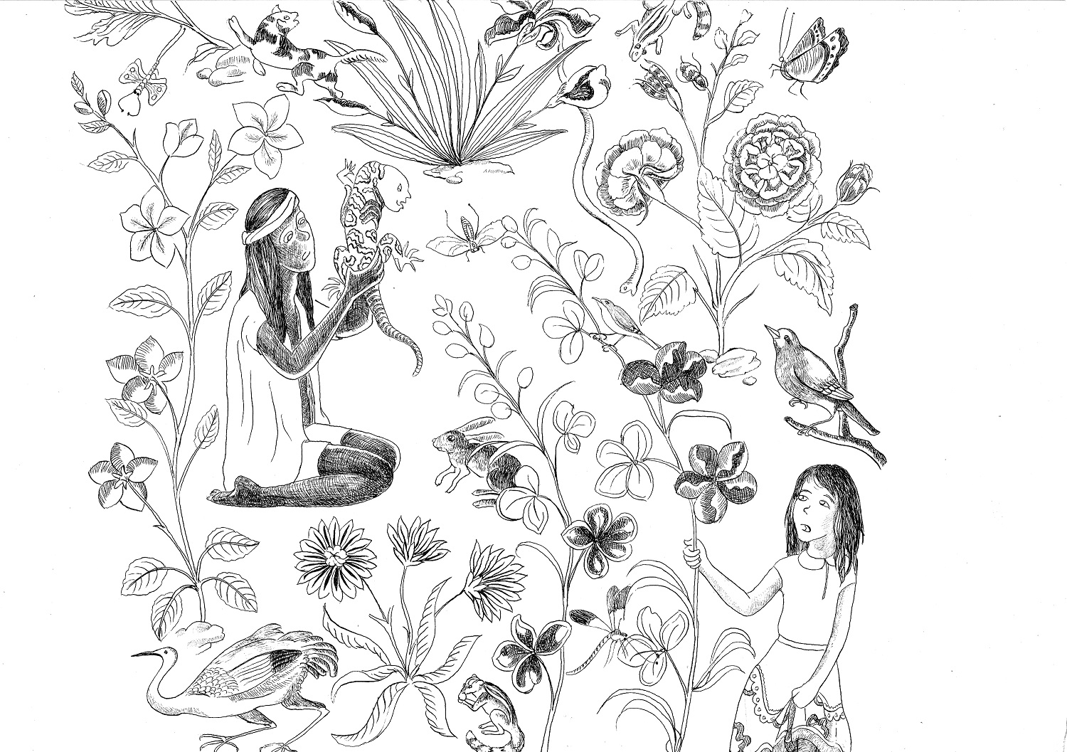 अब उसने मेंढक की गर्दन पकड़कर उसको बिल्ली की तरह उठाकर अपनी हथेली पर रख लिया। मारिया-नुन्ज़िआता, जो अब भी अपने एप्रन का कोना चबाये जा रही थी, करीब आई और उसके बगल में उकड़ूँ बैठ गई।