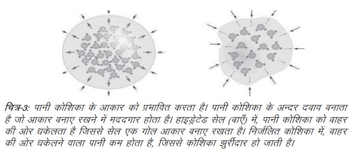 पानी कोशिका में इतना महत्वपूर्ण कारक है क्योंकि यह विभिन्न रासायनिक समूहों के साथ दुर्बल अन्तर्क्रियाएँ विकसित कर लेता है। यह विशाल अणुओं की संरचना के रख-रखाव तथा कार्य निष्पादन में प्रमुख भूमिका निभाता है और कोशिका झिल्ली जैसी जटिल रचनाओं की रक्षा करता है। पानी की वजह से ही कोशिका के अन्दर हर चीज़ आणविक स्तर पर सही आकार में बनी रहती है। चूँकि, अणु का आकार जैव-रासायनिक क्रियाओं में निर्णायक भूमिका निभाता है, इसलिए यह पानी की एक प्रमुख भूमिका है। उदाहरण के लिए, कोशिकाओं के कार्यकारी अणु प्रोटीन्स की उपयुक्त आकृति को बनाए रखने के लिए पानी ज़रूरी है। प्रोटीन अमीनो अम्ल नामक इकाइयों की लम्बी श्रृंखलाएँ होते हैं और इनके कामकाज के लिए ज़रूरी होता है कि ये सही ढंग से तह हो जाएँ।