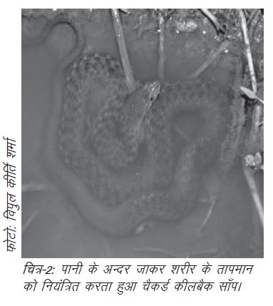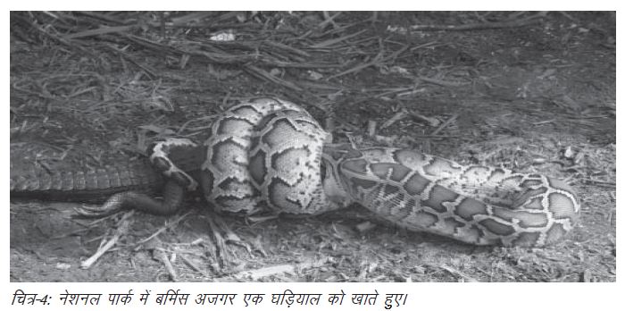 दिसम्बर को भरतपुर के केवलादेव नेशनल पार्क में प्रवेश लेते हुए सुबह के साढे ग्यारह बज रहे थे। इसके बावजूद सूर्य नदारद था। घने कोहरे के कारण चेन्नई से आई छह सदस्यीय फोटोग्राफर्स की एक टीम, पक्षियों के फोटो खींचने की बजाय अपना समय गप्पे मारने में लगा रही थी। एक घण्टे बाद धूप खिल गई परन्तु अधिकांश पक्षी पेट-पूजा कर घरौंदों में लौट गए थे और कुछ बचे-खुचे आराम फरमा रहे थे। मेरी निगाहें सड़क के दोनों ओर घनी झाड़ियों के बीच कुछ और ही खोज रही थीं। तभी मैदान जैसे खुले हिस्से में कुछ हलचल दिखी। ठण्डे बिलों में दुबके अजगर धूप खिलते ही धूप का मज़ा लेने बिलों से बाहर आने लगे थे।