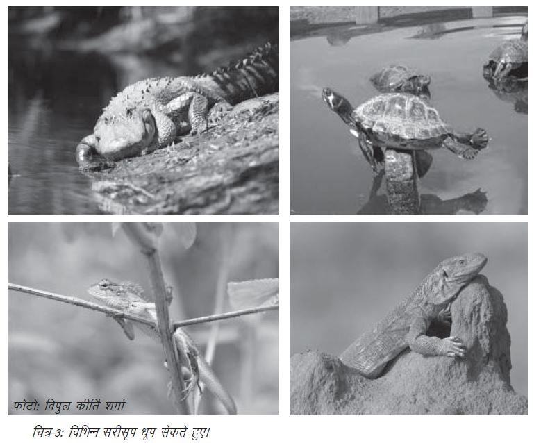 धूप सेंकना कई जन्तुओं में आराम करने की बजाय, एक बेहद आवश्यक व्यवहार है जो उनकी सामान्य कार्यिकी को बनाए रखता है। विशेष तौर पर ज़मीन पर पाए जाने वाले सरीसृपों में धूप सेंकना बेहद ठण्डे वातावरण में खुद को बचाने का तरीका है क्योंकि वे हमारे समान अपने शरीर का तापमान नियत करने में असमर्थ होते हैं।