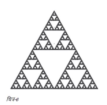 गणितज्ञों ने फ्रेक्टल्स बनाने के कई अनोखे नियम खोज निकाले हैं। माईकल बार्नस्ली नाम के एक गणितज्ञ ने तो सिर्फ बिन्दुओं की मदद से सुन्दर फ्रेक्टल्स बनाने के आसान नियम दिए हैं। चित्र-6 की आकृति जिसे सियरपिन्स्की (Sierpinski) त्रिभुज कहा जाता है, भी एक ऐसे ही आसान-से नियम के आधार पर बनाई गई है।