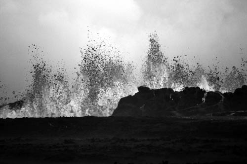 ज्वालामुखी विस्फोट सिर्फ स्थलीय क्षेत्रों में नहीं, अपितु समुद्रों की गहराइयों में भी होते हैं। समुद्री ज्वालामुखी विस्फोटों के कारण छोटे-छोटे टापुओं का निर्माण हो जाता है। इन टापुओं में जो बहुत छोटे होते हैं, वे समुद्री लहरों द्वारा नष्ट हो जाते हैं। परन्तु बड़े द्वीप बच जाते हैं तथा वे निरन्तर आकार में बढ़ते रहते हैं। प्रशांत महासागर में ज्वालामुखी लावा से निर्मित अनेक द्वीप मौजूद हैं। अटलांटिक तथा हिन्द महासागर में भी इस प्रकार के द्वीप पाए जाते हैं।
