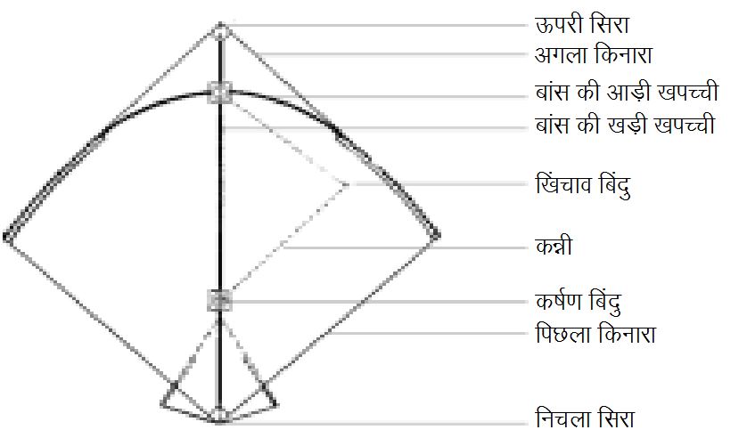 कोई भी पतंग अपनी सद्दी से बंधी कन्नी या ब्रिडल की सहायता से उड़ती है। इस कन्नी में दो या दो से अधिक डोरियां होती हैं जिन्हें ‘लेग्स’ कहते हैं जो पतंग को डोरी से जोड़ती है। कन्नियों के पतंग से जुड़ने के स्थान को कर्षण बिंदु कहते हैं। ये कर्षण बिंदु ही एंगल ऑफ अटैक का निर्धारण करते हैं और कन्नियां उड़ती हुई पतंग की आकृति बनाए रखने के लिए पतंग पर दबाव बनाए रखती हैं। पतंग को हवा में अधिक ऊंचाई पर उड़ाने में पतंग की दुम, झालर आदि सहायक होते हैं।