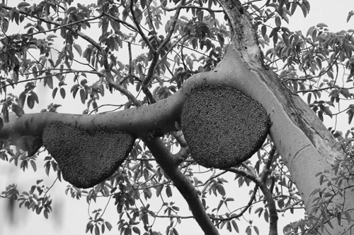 विभिन्न किस्म की मधुमक्खियां अपने छत्ते का तापमान कम रखने के लिए पानी का छिड़काव करती हैं, अपने पंखों को झलकर हवा चलाती हैं या कभी-कभी तो एक साथ छत्ते से दूर जाकर मल त्याग करती हैं, जिसके साथ बहुत सारी गर्मी भी चली जाती है। मगर हाल ही में ऑस्ट्रिया के ग्राज़ विश्वविद्यालय के जेराल्ड कास्टबर्गर और उनके साथियों ने नेपाल के चितवन राष्ट्रीय उद्यान में पाई जानी वाली विशाल मधुमक्खी के छत्तों का अध्ययन करके कुछ रोचक परिणाम प्रकाशित किए हैं। छत्ते के तापमान का अध्ययन करने के लिए उन्होंने इन्फ्रारेड कैमरों का उपयोग करके छत्तों की फिल्में उतारी हैं।