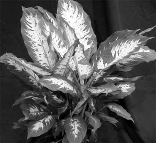 9. डम्बकेन - सबसे ज़्यादा चर्चा वाट्सएप पर इसी की है। नाम है डिफेनबेकिया। इसके कई प्रकार हैं - बड़े-बड़े चितकबरे पत्तों से लेकर गहरे हरे व सुनहरे पत्तों तक।