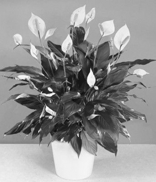 5. पीस लिली और फ्लेमिंगो लिली - एक का पुष्पक्रम सफेद है तो दूसरे का फ्लेमिंगो पक्षी की चोंच के रंग का।