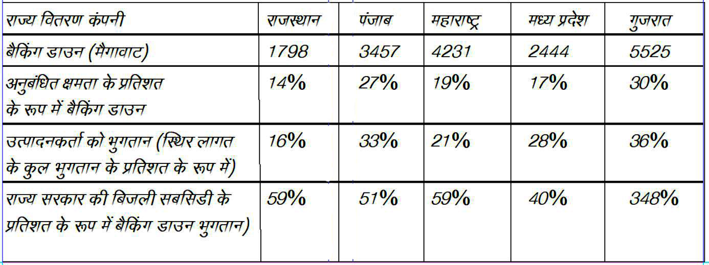 कुल मिलाकर परिणाम यह है कि राज्य उस सरप्लस बिजली का भुगतान कर रहे हैं जिसका वे उपयोग ही नहीं करते। बैकिंग डाउन की वजह से उत्पादन कंपनियों को स्थिर लागत का भुगतान 15 से 35 प्रतिशत तक हो रहा है। गुजरात में यह भुगतान बिजली पर दी जाने वाली कृषि सबसिडी से ज़्यादा है। अन्य राज्यों में यह भुगतान बिजली सबसिडी के 40 से 60 प्रतिशत के बराबर है। और इस लागत का बोझ अंतत: बिजली उपभोक्ता वहन करते हैं।