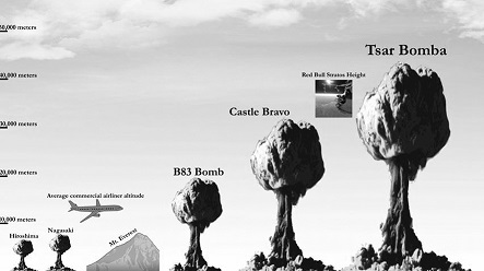 ये बम बहुत विध्वंसक होते हुए भी परमाणु बमों के सामने तो बौने ही हैं क्योंकि हिरोशिमा पर वर्ष 1945 में गिराए गए परमाणु बम की विध्वंसक क्षमता 15000 टन टीएनटी के बराबर थी।
