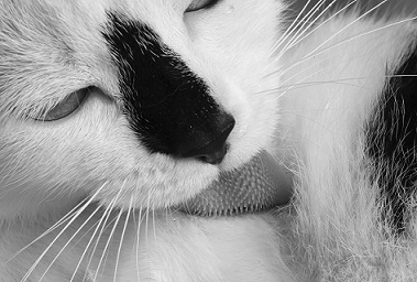 बिल्लियों के मालिक जानते हैं कि वे जितने समय जागती हैं, उसमें वे या तो अपने मालिक को खुश करके प्यार पाने की कोशिश करती रहती हैं या उछल-कूद मचाती रहती हैं। शेष समय वे खुद को चाटती रहती हैं। और अब 3-डी स्कैन तकनीक की मदद से वैज्ञानिकों ने पता लगाया है कि ऐसा करते समय बिल्लियां सिर्फ अपना थूक शरीर पर नहीं फैलातीं बल्कि स्वयं की गहराई से सफाई भी करती हैं।