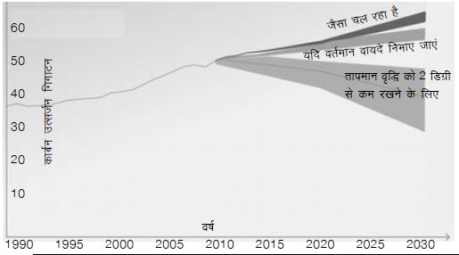 वैश्विक तापमान को 2 डिग्री सेल्सियस से नीचे रखने के लिए समय ज़्यादा नहीं बचा है। अगर उत्सर्जन अंतर 2030 तक खत्म नहीं होता है, तो वैश्विक तापमान 2 डिग्री सेल्सियस से ज़्यादा बढ़ जाएगा।