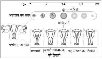 अंडाशय में परिपक्व होने के साथ ही अंडाणु के आसपास गुब्बारे की तरह की थैली बनने लगती है जिसे पुटिका कहते हैं। उसी समय गर्भाशय की अंदरूनी परत मोटी होने लगती है। इसमें ढेर सारी छोटी-छोटी खून की नलियां बनने लगती हैं ताकि यदि बच्चा ठहरे तो उस तक खून पहुंच सके। अंडाशय में अंडाणु के आसपास बढ़ रही पुटिका इतनी बड़ी हो जाती है कि वह फूट जाती है। अंडाणु अंडाशय से बाहर निकल आता है। अंडाणु किसी एक अंडवाहिनी में प्रवेश करता है और गर्भाशय की तरफ बढ़ता है।