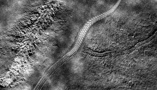 लेकिन हाल ही में वैज्ञानिकों ने एक अपवाद खोज निकाला है। एक जीवाश्म का पता लगाया है जो रेंगने की क्रिया करते अश्मीभूत हुआ है। यह चट्टान लगभग 56 करोड़ वर्ष पुरानी चट्टान है यानी लगभग उतनी ही पुरानी जितने कि जंतु हैं। यह छोटे-छोटे अनेक पैरों वाला एक चपटा-सा खंडित शरीर वाला जीव है जो काफी कुछ आधुनिक कनखजूरे जैसा दिखता है लेकिन इसका शरीर नर्म मालूम होता है। इस जीवाश्म के पीछे की चट्टान में एक लम्बी खांचेदार किनारों की लकीर-सी दिखाई देती है।