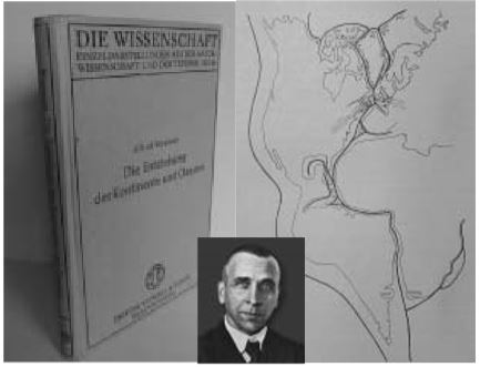 वर्ष 1912 में, जर्मन मौसम विज्ञानी और खगोल शास्त्र में प्रशिक्षित अल्फ्रेड वेगनर ने सुएस सिद्धांत की खामियों को दूर करने का प्रस्ताव रखा। 1910 में, मार्बर्ग विश्व विद्यालय के एक साथी द्वारा दिए गए एटलस के नए संस्करण को देखकर वेगनर चकित रह गए (जैसे कि उनके पहले अन्य लोगों के साथ भी हुआ था)। उनके आश्चर्य का कारण यह था कि उन्होंने ध्यान दिया कि किस तरह से दक्षिण अमेरिका का पूर्वी तट अफ्रीका के पश्चिमी तट में फिट बैठता है। वे चकरा तो गए, किंतु उन्होंने इस विचार को असंभव माना और इसे आगे नहीं बढ़ाया। फिर वर्ष 1911 में ब्रााज़ील और अफ्रीका की चट्टानों में जीवाश्म रिकॉर्ड के बीच जीवाश्म वैज्ञानिक समानता पर चर्चा करने वाली एक रिपोर्ट सामने आई। जीवाश्म विज्ञानियों ने तर्क दिया कि दूर-दूर स्थित ये दोनों भूभाग किसी समय एक ज़मीनी सेतु के माध्यम से जुड़े हुए थे; लेकिन वेगनर ने चीज़ों को अलग तरीके से देखा और 1915 में लिखी गई अपनी पुस्तक डाई एन्स्टेहुंग डेर कॉन्टिनेन्ट उंड ओज़ीएन (यानी महाद्वीपों और समुद्र की उत्पत्ति) में सुझाया कि जीवाश्मों और चट्टानों के बीच समानताएं बताती हैं कि करोड़ों साल पहले ये दो महाद्वीप एक थे। इसके साथ ही वेगनर को संभावित प्रमाण का दूसरा हिस्सा प्राप्त हो गया। आधुनिक तटरेखा और प्राचीन तटरेखा की संगति भी इस सिद्धांत का समर्थन करती है। जहां वर्तमान तटरेखा समुद्र की वर्तमान ऊंचाई पर निर्भर करती है वहीं प्राचीन तटरेखा का पता हमें महाद्वीप के समुद्र में डूबे किनारे से चलता है जिसके आगे अचानक गहराई बढ़ती है।