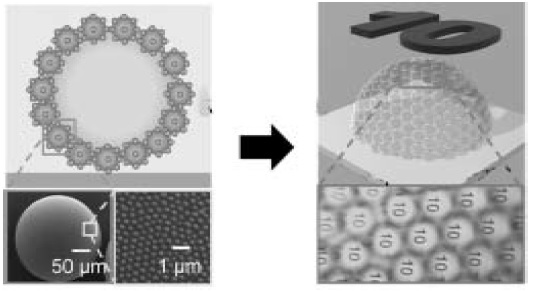 बाल्टिमोर टीम ने तेल की नैनो बूंदें बनाने के लिए केश-नलिका उपकरण का उपयोग किया और इन बूंदों को सिलिकॉन के नैनो कणों से लेप दिया। लेप की वजह से बूंदें जुड़ी नहीं बल्कि एक नियमित, तैरते पटिए के आकार की इकहरी परत के रूप में जम गर्इं। इस तरह से एक बड़ी बूंद पर छोटी-छोटी बूंदों की एक परत बन गई। परिणामस्वरूप एक नैनोमीटर आकार के गोले पर उसी सामग्री की छोटी-छोटी बूंदों वाला एक तरल कंचा तैयार हो गया। यह संरचना ठीक संयुक्त आंख की संरचना जैसी होती है।