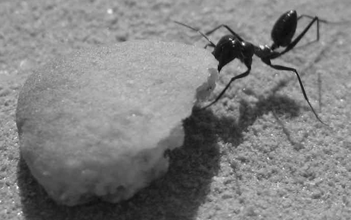 चींटियों को भोजन का छोटा टुकड़ा मिले तो वे उसे धकेलकर अपनी बांबी तक ले जाती हैं। लेकिन यदि टुकड़ा बड़ा हो तो वे उसे खींचकर ले जाती हैं। सवाल यह है कि इस तरह उल्टे चलते हुए उन्हें दिशा का अंदाज़ कैसे लगता है। पहले वैज्ञानिक सोचते थे कि चींटियों को अपने सामने की ओर कुछ परिचित चिंह देखना पड़ते हैं और उन्हीं की मदद से वे अपनी मंज़िल तक पहुंच पाती हैं। लेकिन अब एक अनुसंधान दल ने स्पष्ट किया है कि उल्टे चलते हुए भी वे पुराने परिचित दृश्यों को पहचान सकती हैं।