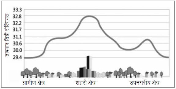हम भोपाल, हैदराबाद, बैंगलुरू या श्रीनगर स्थित शहरी झीलों के बारे में तो जानते हैं जो शहरों को खुशनुमा माहौल और शीतलता प्रदान करती हैं। लेकिन शहरी गर्म टापू क्या चीज़ है? शहरी गर्म टापू (urban heat island या UHI) यानी घनी आबादी वाले ऐसे शहर जिनका तापमान अपने आसपास के उपनगर या ग्रामीण इलाकों की तुलना में 2 डिग्री तक अधिक होता है। लेकिन ऐसा क्यों होता है? ऐसा इसलिए होता है क्योंकि अधिक खुली जगह, पेड़-पौधों और अधिक घास से परिपूर्ण गांवों की तुलना में शहरों में फुटपाथ, सड़क और छत बनाने में कॉन्क्रीट, डामर (टार) और ईंट जैसी सामग्रियों का उपयोग होता है जो अपारदर्शी होती हैं और अपने से प्रकाश को गुज़रने नहीं देती, लेकिन इनकी ऊष्मा धारिता और ऊष्मा चालकता अधिक होती है।