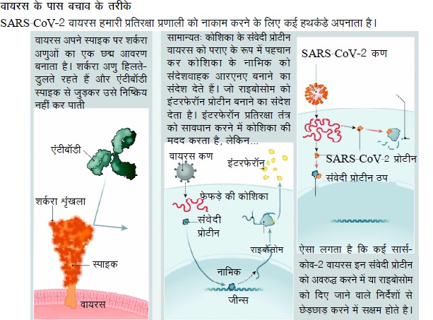 यहां बताया गया है कि आम तौर पर प्रतिरक्षा प्रणाली कैसे अन्य वायरसों को बेअसर करती है, और कैसे सार्स-कोव-2 प्रतिरक्षा प्रणाली के इन प्रयासों को विफल कर फैलता रहता है।