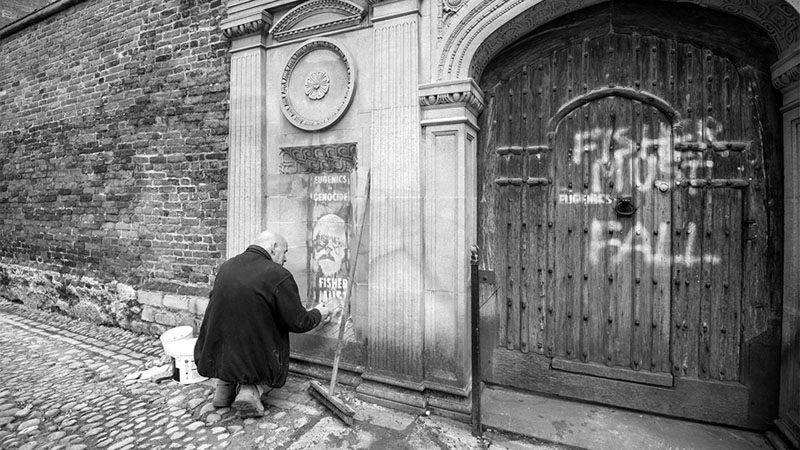 यू.के. के प्रसिद्ध कैंब्रिज विश्वविद्यालय ने उस रंगीन कांच की खिड़की को हटा दिया है जिसका नाम मशहूर बायो-सांख्यिकीविद रोनाल्ड फिशर के नाम पर था। फिशर 20वीं सदी के मशहूर सांख्यिकीविद रहे हैं और यूजेनिक्स के मुख्य समर्थक रहे हैं। हालांकि विश्वविद्यालय ने उनके वैज्ञानिक आविष्कारों की सराहना की है लेकिन विभिन्न समुदायों के बीच मज़बूती बनाए रखने के लिए उनके नाम को हटा दिया गया है। युनिवर्सिटी कॉलेज लंदन के अधिकारी भी यूजेनिक्स के समर्थक फ्रांसिस गाल्टन और गणितज्ञ कार्ल पियरसन के नाम पर रखे गए इमारतों के नाम बदलने पर विचार कर रहे हैं।