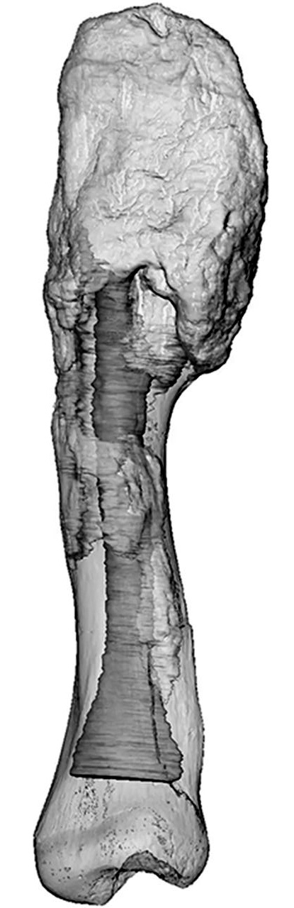 डायनासौर पर अध्ययन करते हुए जीवाश्म वैज्ञानिकों को डायनासौर की एक विकृत हड्डी का जीवाश्म मिला था। यह हड्डी एक सींग वाले शाकाहारी सेंट्रोसौरस के पैर के निचले हिस्से की फिबुला हड्डी थी। यह जीव लगभग 7.6 करोड़ वर्ष पहले वर्तमान के दक्षिणी अल्बर्टा (कनाडा) में पाया जाता था। इस स्थान पर आजकल एक डायनासौर पार्क है।