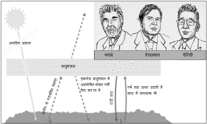 मनाबे धरती की जलवायु के भौतिक मॉडल की मदद से यह दर्शा पाने में सफल रहे कि कैसे वायुमंडल में कार्बन डाईऑक्साइड की बढ़ती सांद्रता के साथ धरती का तापमान बढ़ता है। इसी काम को आगे बढ़ाते हुए हैसलमान ने वह मॉडल विकसित किया जिसमें मौसम और जलवायु की कड़ियां जोड़ी जा सकती हैं। उन्होंने ऐसे संकेतक भी विकसित किए जिनकी मदद से जलवायु पर मनुष्य के प्रभाव को आंका जा सकता है। मनाबे व हैसलमान द्वारा विकसित मॉडल से यह स्पष्ट हुआ कि धरती के तापमान में हो रही वृद्धि मूलत: मानव-जनित कार्बन डाईऑक्साइड की वजह से हो रही है।