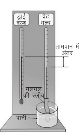 इस संदर्भ में वेट-बल्ब तापमान महत्वपूर्ण है। वेट-बल्ब तापमान वह न्यूनतम तापमान है जो कोई वस्तु गर्म वातावरण में हासिल कर सकती है जब साथ-साथ उसे पानी के वाष्पन से ठंडा किया जा रहा हो। जब आसपास का वातावरण गर्म हो और वस्तु की सतह से पानी वाष्पित हो रहा हो तो उनके बीच एक साम्य स्थापित होता है और वस्तु के तापमान में कमी आती है। अपनी त्वचा का उदाहरण लीजिए। किसी गर्म दिन में जब आपकी त्वचा की सतह से पसीना वाष्पीकृत होता है तब आपकी त्वचा कम-से-कम जितने तापमान तक ठंडी हो सकती है उसे वेट-बल्ब तापमान कहा जाता है। यह तापमान सिर्फ साधारण तापमापी से नापा गया तापमान नहीं बल्कि वाष्पन की वजह से आई या आ सकने वाली गिरावट को दर्शाता है।