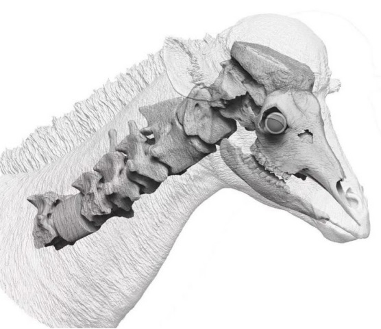 चाइनीज़ अकेडमी ऑफ साइंसेज़ (सीएएस) के जीवाश्म विज्ञानी ताओ डेंग और उनके सहयोगी शी-क्वी वांग ने हड्डियों की बनावट और जमावट को समझने के लिए सीटी स्कैन का सहारा लिया। गर्दन की असामान्य रूप से मोटी हड्डियों के अलावा शोधकर्ताओं को इस जीव के सिर के ऊपर हाथ के बराबर सींगदार हेलमेटनुमा डिस्क भी मिली। उन्होंने कशेरुकों के आपसी जुड़ाव का विश्लेषण किया और कंप्यूटर सिमुलेशन की मदद से यह समझने की कोशिश की कि सिर एवं गर्दन झटके लगने पर कैसी प्रतिक्रिया देंगे। इसके अलावा उन्होंने इस जीव के दांतों के एनेमल के रसायन की जांच करके इसके आहार का भी पता लगाया।