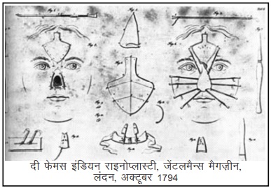 ब्रिटिश लोग इस शल्य क्रिया से अनभिज्ञ थे, इस बात का प्रमाण 1816 में प्रकाशित यॉर्क के जोसेफ कार्प्यू की पुस्तक एन अकाउंट ऑफ टू सक्सेसफुल ऑपरेशन्स फॉर रिस्टोरिंग ए लॉस्ट नोस (कटी हुई नाक को बहाल करने के दो सफल ऑपरेशनों का विवरण) से मिलता है। कार्प्यू अपने देश में राइनोप्लास्टी के अग्रणि लोगों में से थे। इस पुस्तक में वे ईस्ट इंडिया कंपनी के दो ‘चिकित्सा महानुभावों’ के अवलोकनों का ज़िक्र करते हैं; इन दोनों ने 1792 में पुना के श्री कुमार द्वारा की गई सर्जरी को देखा था।