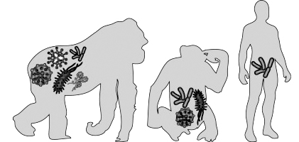 कॉर्नेल विश्वविद्यालय के जीवविज्ञानी एंड्रयू मोएलर ने सबसे पहले बताया था कि आंत के सूक्ष्मजीवों और मनुष्यों के बीच सम्बंध लंबे समय में विकसित हुए हैं। उनके दल ने बताया था कि मनुष्य और प्रायमेट प्राणियों की आंत के सूक्ष्मजीवों के बीच समानताएं हैं जिससे यह स्पष्ट हुआ कि इनकी उपस्थिति मनुष्यों की उत्पत्ति से भी पहले की है।