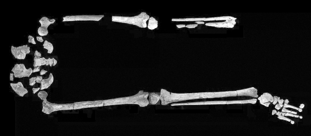 कंकाल को पूरी तरह निकालने पर शोधकर्ताओं ने पाया कि कंकाल में सिर्फ बाएं पैर की पिंडली से नीचे का हिस्सा गायब था, लेकिन बाकी कंकाल साबुत था। पिंडली में दो हड्डियां होती हैं और उस कंकाल में ये दोनों नीचे की ओर जुड़ी हुई थीं। और टांग सपाट तरीके से कटी हुई थी। ऐसा नहीं लगता था कि वह हिस्सा कुचला गया था या चकनाचूर हो गया था – अर्थात पैर का वह हिस्सा कोई चट्टान गिरने या किसी जानवर के काटने से नहीं कटा था बल्कि किसी धारदार औज़ार से सफाई से काटा गया था। दूसरे शब्दों में इस हिस्से की सर्जरी की गई थी।
