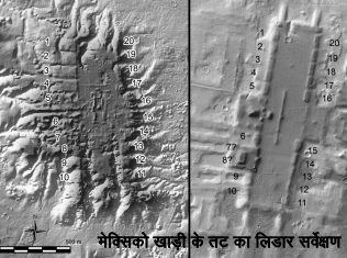 इससे 2 वर्ष पहले एरिज़ोना विश्वविद्यालय के ताकेशी इनोमाटा ने मेक्सिको खाड़ी के तट का लिडार सर्वेक्षण किया था जिसमें लगभग 500 प्राचीन खंडहरों का पता चला था। स्प्राक और इनोमाटा ने मिलकर इनमें से 415 संकुलों का अध्ययन यह जानने के लिए किया कि किस तरह से इनकी सीध सूर्य, चंद्रमा, शुक्र व अन्य आकाशीय पिंडों से बैठती है।