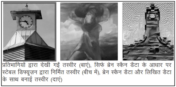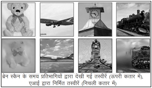 एक ओर तो तंत्रिका वैज्ञानिक यह समझने की जद्दोजहद में हैं कि हमारी आंखों से जो इनपुट प्राप्त होता है, उसे दिमाग मानसिक छवियों का रूप कैसे देता है, वहीं एआई ने दिमाग की इस काबिलियत की नकल कर ली है। हाल ही में एक कंप्यूटर दृष्टि सम्मेलन में यह बताया गया कि ब्रेन स्कैन को देखकर एआई उस छवि का काफी यथार्थ चित्रण कर देती है जो उस व्यक्ति ने हाल में देखी थी।