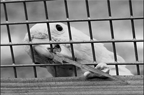 सफेद तोते में यह खोज विएना के पशु चिकित्सा विश्वविद्यालय के वैज्ञानिकों ने की है। उन्होंने इस सफेद तोते को उसके प्रिय भोजन काजू का ललचावा दिया। उन्होंने एक पारदर्शी डिब्बे में एक काजू (साबुत, छिलके सहित) एक प्लेटफॉर्म पर रख दिए। फिर एक पर्दा लगाकर उसे ओझल कर दिया। 10 तोतों को वह डिब्बा दिखाया गया और उन्हें दो में से एक औज़ार चुनने का विकल्प दिया गया - एक छोटी नुकीली छड़ और एक अपेक्षाकृत लंबी लचीली स्ट्रॉ।