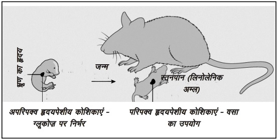 हृदय की मांसपेशियां विशिष्ट कोशिकाओं (हृदयपेशीय कोशिकाओं) से बनी होती है, जिनके सिकुड़ने से दिल धड़कता है। भ्रूण अवस्था में हृदयपेशीय कोशिकाएं अधिकतर ग्लूकोज़ और लैक्टिक एसिड से ऊर्जा प्राप्त करती हैं। लेकिन परिपक्व होने पर ये कोशिकाएं वसा अम्लों से ऊर्जा लेने लगती हैं। अब तक यह बात अनसुलझी थी कि यह परिवर्तन कैसे होता है।