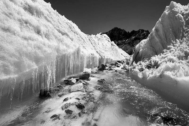पर्माफ्रॉस्ट के बर्फ के रूप में है। पर्वतीय नदियों के जल प्रवाह में ऊंचे पर्वतीय हिमनदों का महत्वपूर्ण योगदान होता है। ये नदियां पर्वतीय राज्यों और नीचे के मैदानी क्षेत्रों के लाखों लोगों की आजीविका का सहारा हैं। पिछले कुछ दशकों से ग्लोबल वार्मिंग और जलवायु परिवर्तन के कारण हिमनद खामोशी से धीरे-धीरे सिकुड़ रहे हैं। हिमनदों के पतला पड़ने और सिकुड़ने से उनके हाइड्रोलॉजिकल गुणों में परिवर्तन होता है जिसका प्रभाव घाटी क्षेत्र में मीठे पानी के प्रवाह और पानी की उपलब्धता पर पड़ रहा है। जलवायु की स्थिति में बदलाव के चलते ऊंचे पर्वतीय हिमनदों से बहकर आने वाले पानी की मात्रा में कमी-बेशी की संभावना है। इसकी वजह से इन क्षेत्रों में जल संसाधन पर असर पड़ेगा, विशेष रूप से शुष्क मौसम या सूखे वर्षों के दौरान। विश्व भर के पिघलते हिमनदों और हिमाच्छदों से बहने वाला जल नदियों से होते हुए अंतत: समुद्र में पहुंचेगा जिससे समुद्रों के जल स्तर में वृद्धि होगी और तटीय क्षेत्रों तथा टापुओं के जलमग्न होने की संभावना बनी रहेगी। इससे आबादी वाले कई तटीय क्षेत्र डूब जाएंगे।