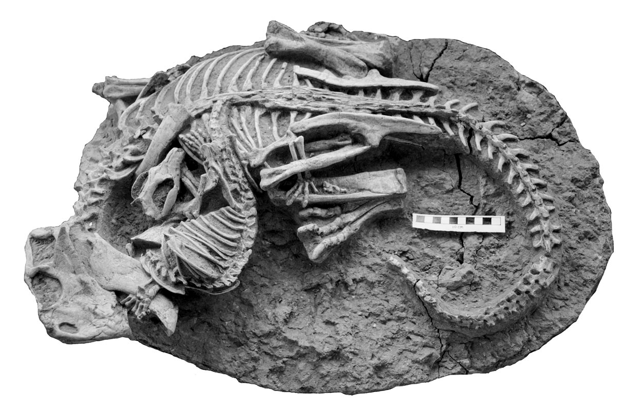साइंटिफिक रिपोर्ट्स में शोधकर्ता बताते हैं कि इस जीवाश्म में इन्हीं दोनों प्राणियों की मुठभेड़ कैद है। लेकिन रेपेनोमेमस रोबस्टस के साथ मुठभेड़ में शिशु सिटेकोसॉरस नहीं बल्कि किशोरवय सिटेकोसॉरस है, जिसका आकार रेपेनोमेमस रोबस्टस स्तनधारी से लगभग तीन गुना बड़ा है। सिटेकोसॉरस लगभग 10.6 किलोग्राम का रहा होगा और स्तनधारी लगभग 3.4 किलोग्राम का। दृश्य देखकर लगता है कि स्तनधारी जीव ही डायनासौर पर हावी था। संभव है कि डायनासौर कुछ ही क्षण में स्तनधारी जीव का भोजन बन जाता लेकिन ऐसा होने के पहले ही अचानक ज्वालामुखीय मलबा बहकर आ गया जिसमें ये दोनों योद्धा मारे गए और उसी मुद्रा में कैद हो गए।