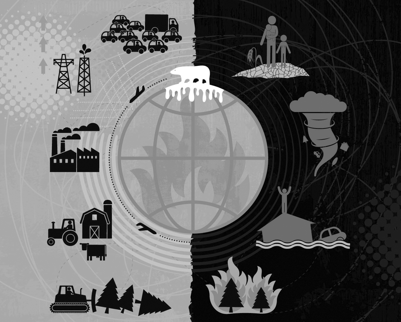 लेकिन औद्योगिक आपदा का जलवायु परिवर्तन से क्या सम्बंध है? वास्तव में भोपाल गैस त्रासदी (इससे प्रभावित लोगों के लिए) कई मायनों में सड़कों पर वाहनों में वृद्धि के कारण बढ़ते प्रदूषण के समान है। एक बार गतिशील होने पर इन दोनों ही परिस्थितियों को पलटना असंभव होता है। और सिद्धांतत: प्रदूषित हवा और कारखाने से हानिकारक गैस का रिसाव सारे लोगों को लगभग समान रूप से प्रभावित कर सकते हैं।