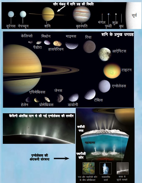 हाल ही में शनि के बर्फीले उपग्रह एन्सेलेडस के बारे में वैज्ञानिकों ने जीवन की उपस्थिति के संकेत दिए हैं। नेचर एस्ट्रोनॉमी में प्रकाशित एक अभूतपूर्व अध्ययन में एन्सेलेडस पर उपस्थित ऐसे रसायनों की उपस्थित का खुलासा किया गया है जो जीवन के लिए आवश्यक हैं।